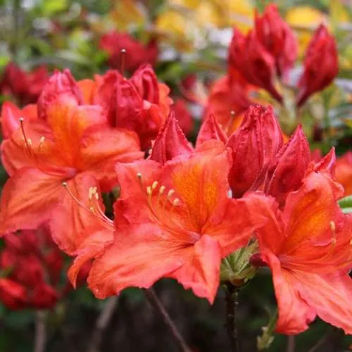 Цветение азалии Лилинштейн начинается весной и радует глаз до начала лета. Во время цветения куст с обилием ярких цветов, создавая настоящую картину из красок. Цветки собираются в соцветия от 6 до 12 штук, что делает их вид впечатляющим и завораживающим. Палитра расцветок варьируется от насыщенных ярко-красных до теплых желтых тонов, что позволяет создавать гармоничные композиции и яркие акценты в вашем саду.