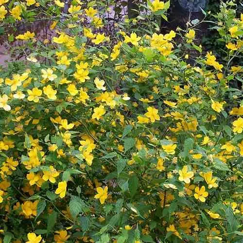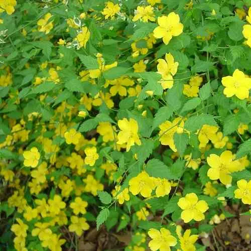 Керрия японская Голден Гинея (Golden Guinea) – ажурный кустарник, высота которого достигает в среднем 1-2,5 м. Растение с изящной формой листа и цветками довольно крупного размера. В диаметре они достигают 6-7 см. По типу простые, не махровые.