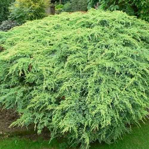 Хвоя зеленая с белыми проблесками, зимой с пурпуровым оттенком. Побеги имеют серебристо-синий оттенок. Молодые весенние приросты имеют золотисто-жёлтую окраску. Особенно яркий цвет кустарник приобретает на открытой солнечной местности. Свой красивый оттенок — это растение сохраняет и зимой.