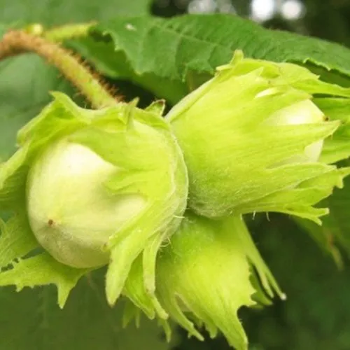 Орехи: крупные или очень крупные (высота до 24 мм, ширина до 23 мм, толщина до 21 мм), высокого качества, располагаются на верхушках ветвей в виде кисти по 3-6 штук, имеют неправильную сферическую или конусообразную форму, с выраженной макушкой. Скорлупка средней толщины, достаточно ломкая, блестящая, темно-коричневого, бронзового цвета с более темными полосками. Верхушка покрыта сероватым напылением. Основание плода меньше ореха, овальное или удлиненной формы, четырехугольное, плоское или с маленьким хохолком.