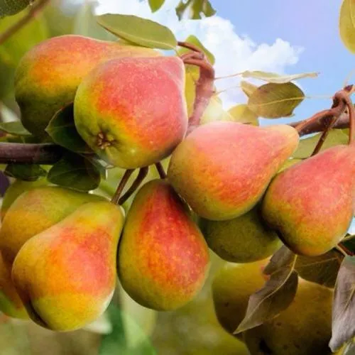 - Обратнояйцевидной или широко-грушевидной, правильной формы, зеленовато-жёлтого, а при полной зрелости – золотисто-жёлтого, с преобладающим сплошным буровато-красным покровом, цвета, покрыты множеством заметных серых подкожных точек. Кожица сухая и блестящая, шероховатая, слегка оржавленная. Мякоть средне плотная и сочная, приятная и маслянистая, белого цвета;
