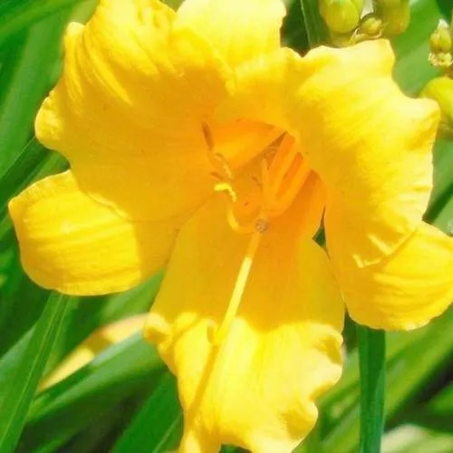 Лилейник Стелла Де Оро известен своей компактной формой куста, высота которого колеблется от 40 до 50 см. Листья растения широкие и мечевидные, обладающие насыщенным зеленым цветом, что создает контраст с яркими желтыми цветами. Его красота становится особенно заметной в солнечных местах, где Стелла Де Оро раскрывает всю свою великолепие.