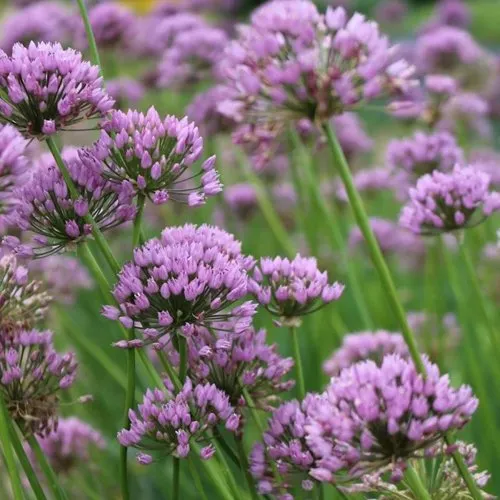 В середине лета над листвой поднимаются стройные цветоносы. На их вершинах — розово-сиреневые шарики диаметром до 5 см. Соцветия плотные, ровные, правильной формы. Цветение продолжается до месяца, без потери декоративности. Аромат лёгкий, травянистый. Цветы охотно посещают пчёлы, что делает растение ценным в экологичных посадках и приусадебных пчельниках.