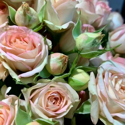 Одной из основных особенностей розы Азоре является её цветок. Он имеет бокаловидную форму и средний размер с диаметром от 5 до 7 см. Основная окраска цветка – это сочетание бледного розового и зеленого оттенков, которые придают ему особую утонченность. Двухцветная палитра добавляет изюминку и способствует созданию уникальных композиций в букете.