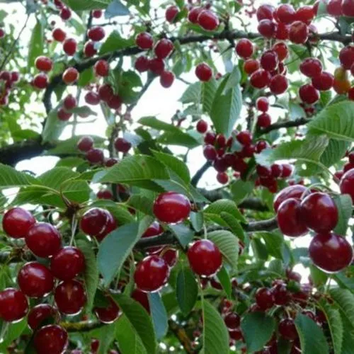 - Овальной или широко-округлой формы, тёмно-бордового цвета. Мякоть плотная и сочная, как и сок, тёмно-красного цвета, отличаются своей привлекательностью. Косточка средняя, округлой формы, легко извлекается;